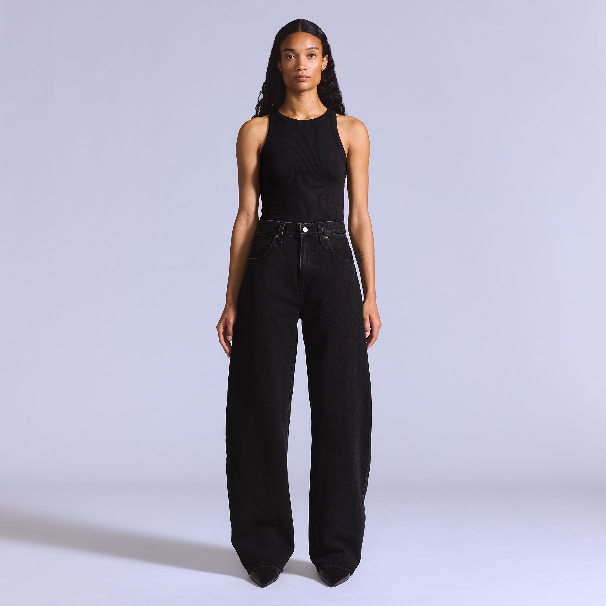 Levi's® Blue Tab™ is an elevated collection that infuses our iconic denim heritage with traditional craftsmanship. Expect thoughtful details, sharp tailoring and finishes that are rich with character. The perfectly sculpted curve. We designed our Drop Barrel jeans with a mid rise, a relaxed, slouchy fit and a barrel-shaped leg.