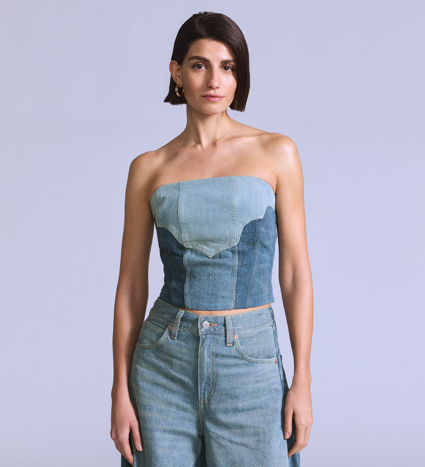 Levi's® Blue Tab™ is an elevated collection that infuses our iconic denim heritage with traditional craftsmanship. Expect thoughtful details, sharp tailoring and finishes that are rich with character. Our Roper Bustier features flattering seam detailing and a slim fit that hugs just right. Plus, we crafted it with premium Japanese fabric.