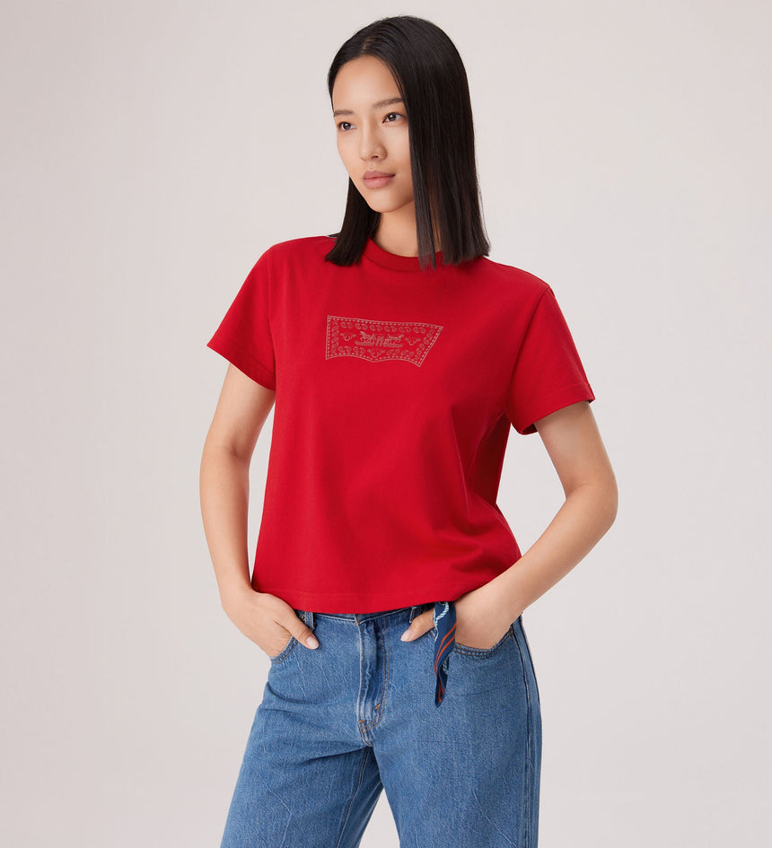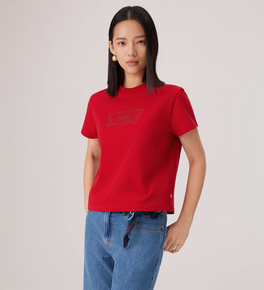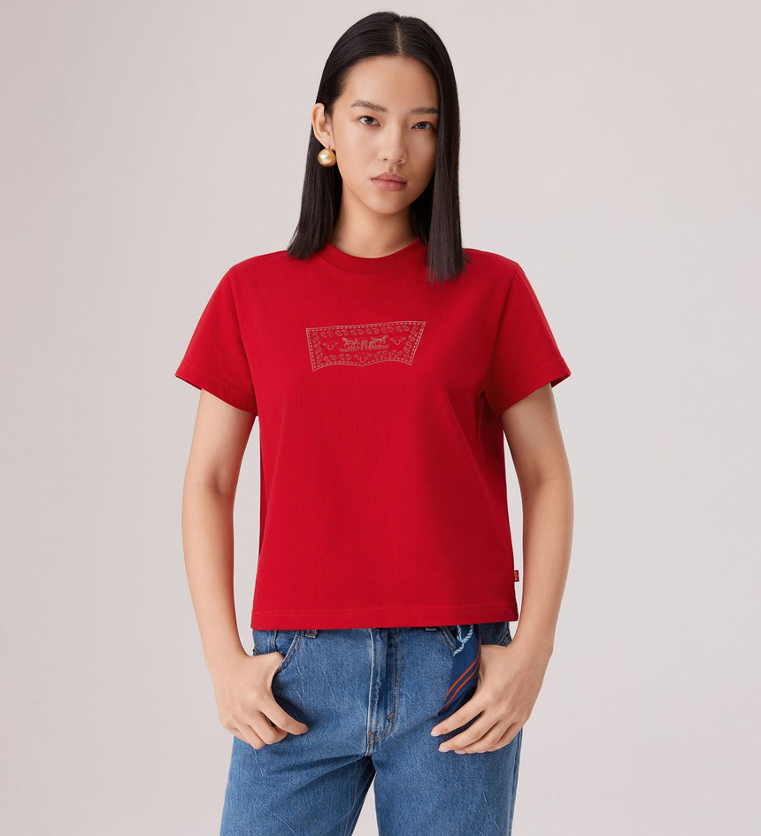 It’s the Year of the Horse and time to celebrate. Out with the old and into the new—fresh Levi’s® styles bring good luck. We took our classic batwing logo and gave it a Lunar New Year twist. This Short-Sleeve Batwing Tee features a standard fit and a metallic graphic design.