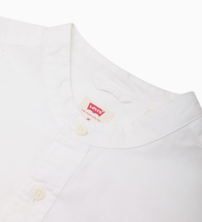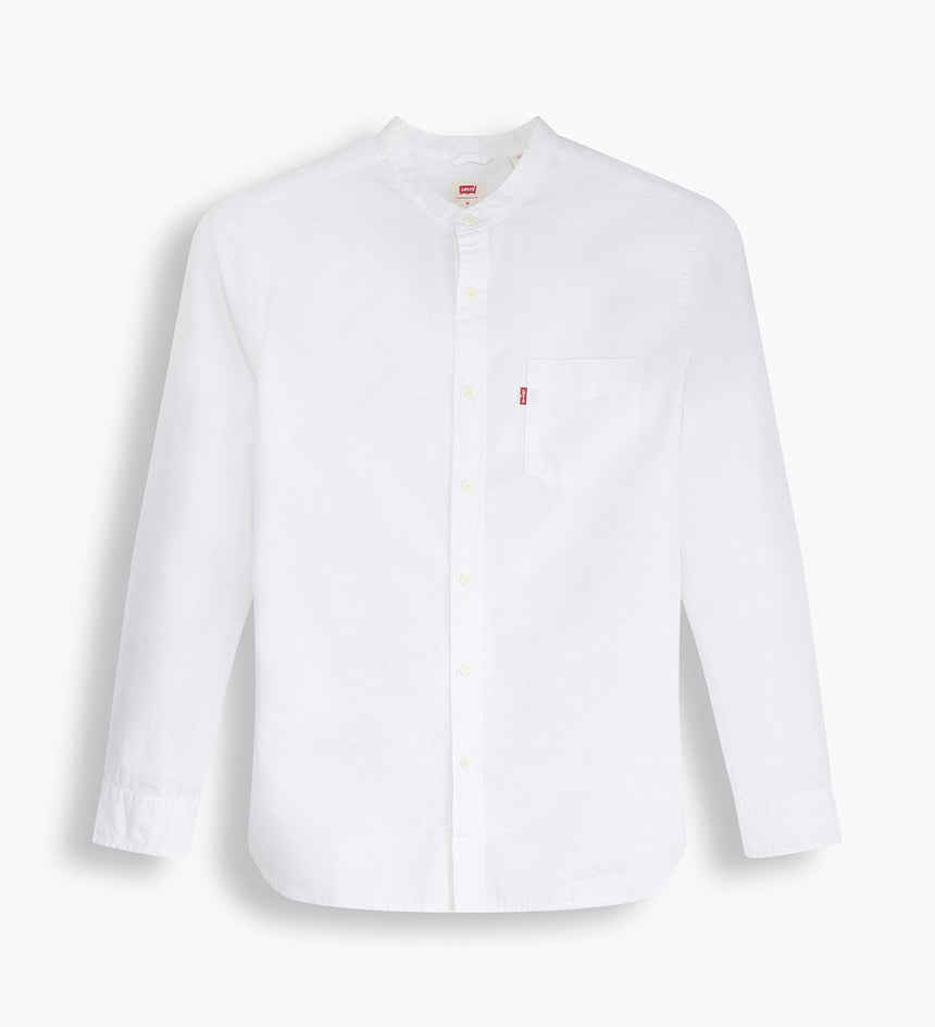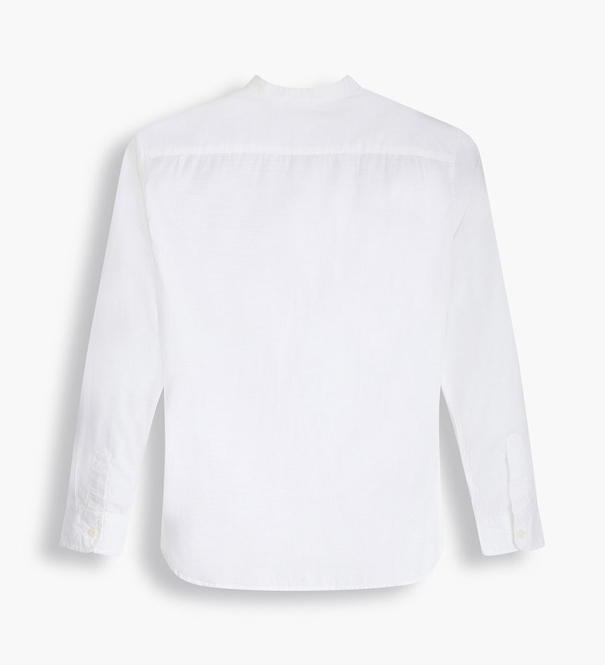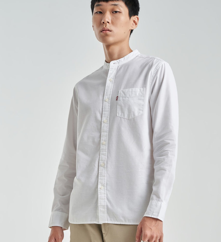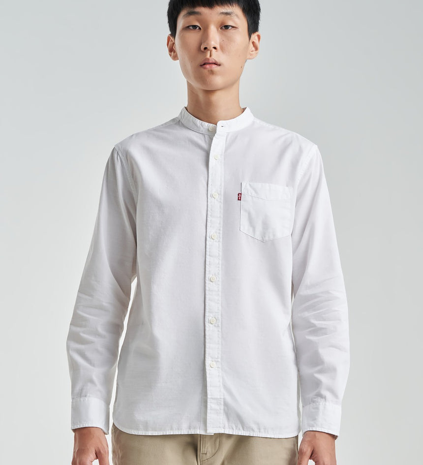- An elevated banded collar shirt