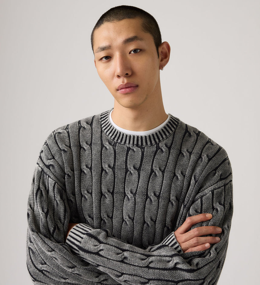 - A timeless cableknit sweater