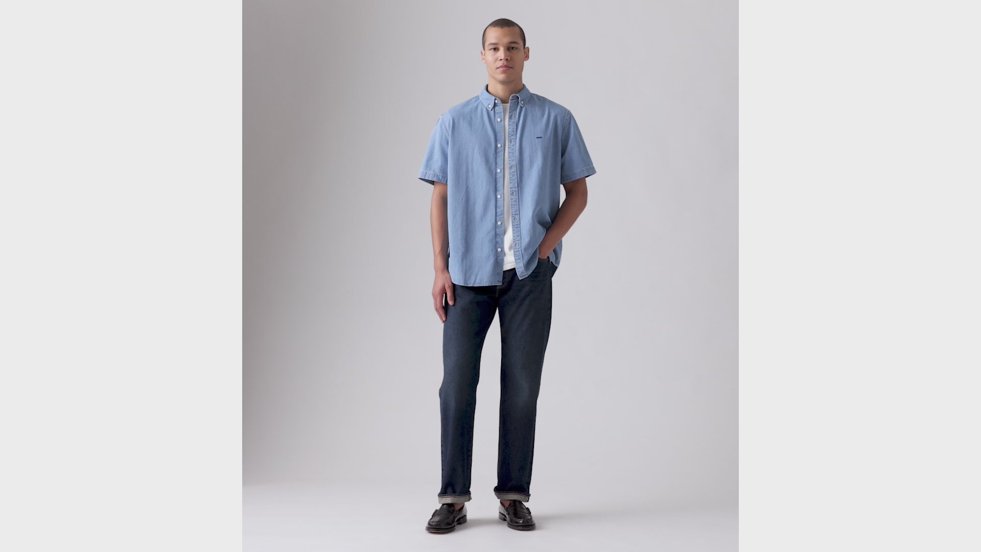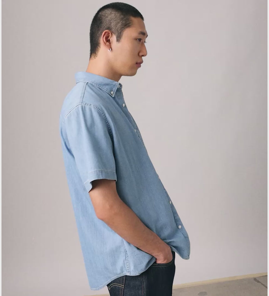 Our denim and shirts were made for each other—and this Short-Sleeve Authentic Button-Down Shirt proves it. We designed it with a casual, relaxed fit and a classic button-up front.