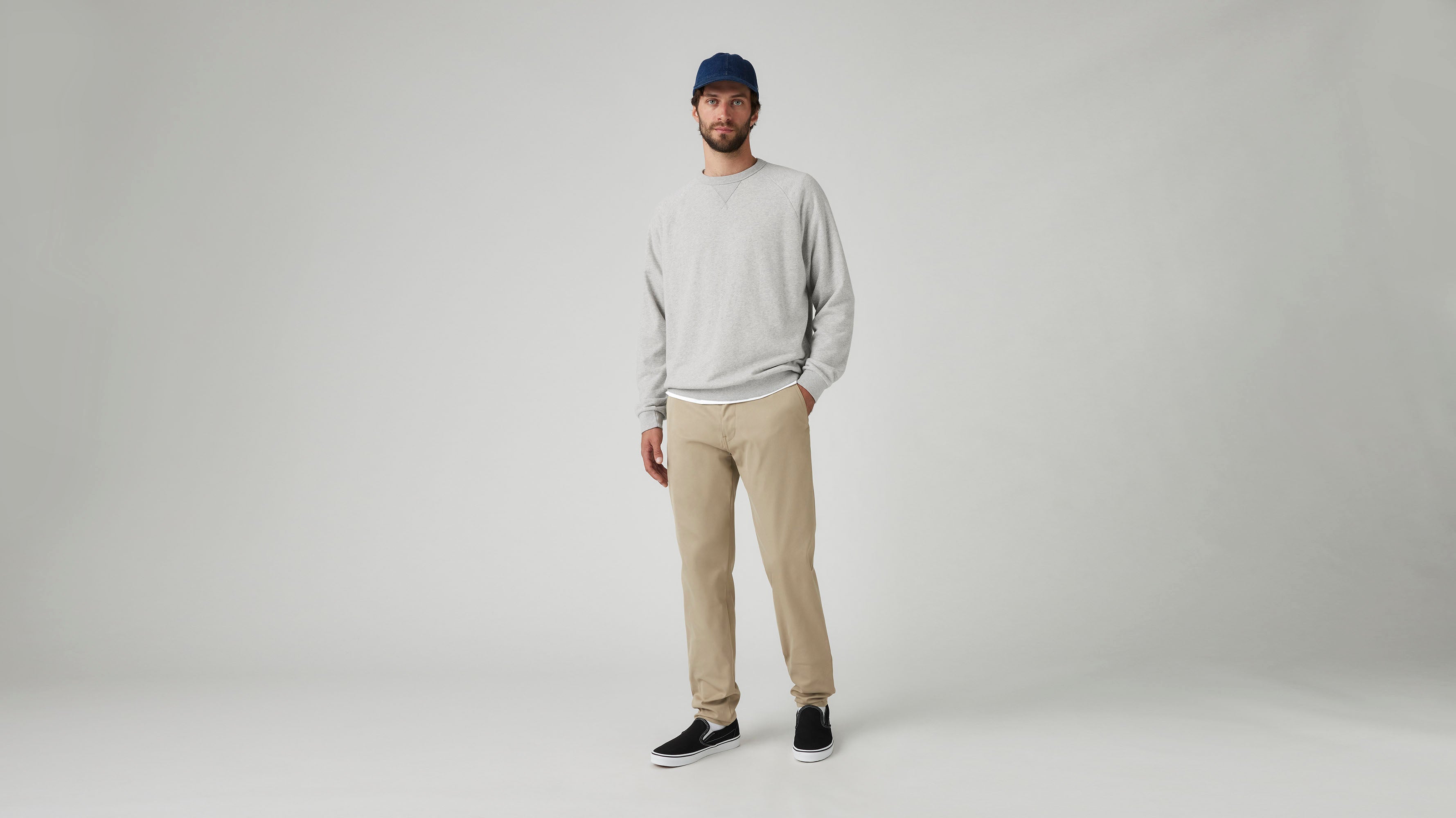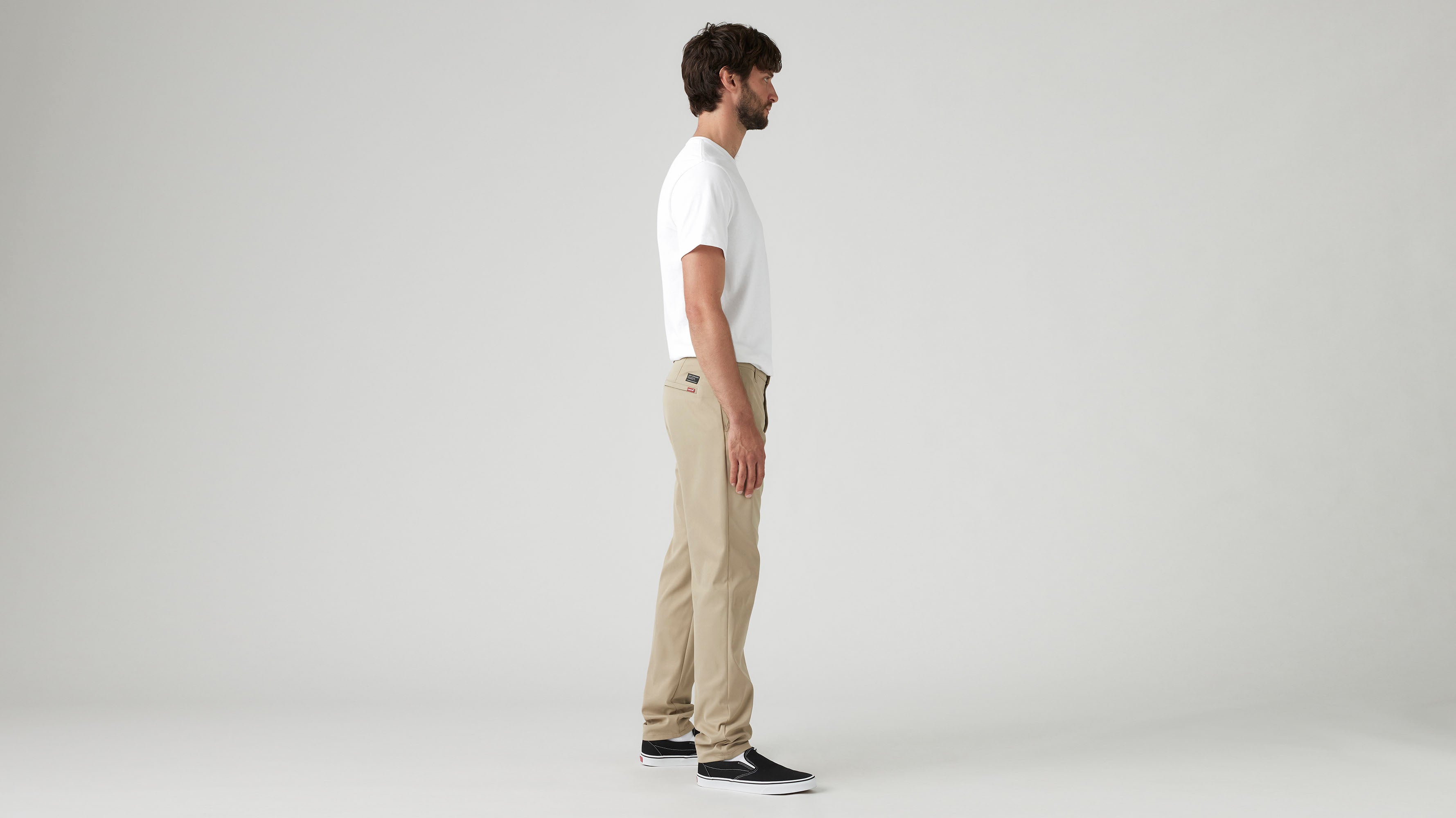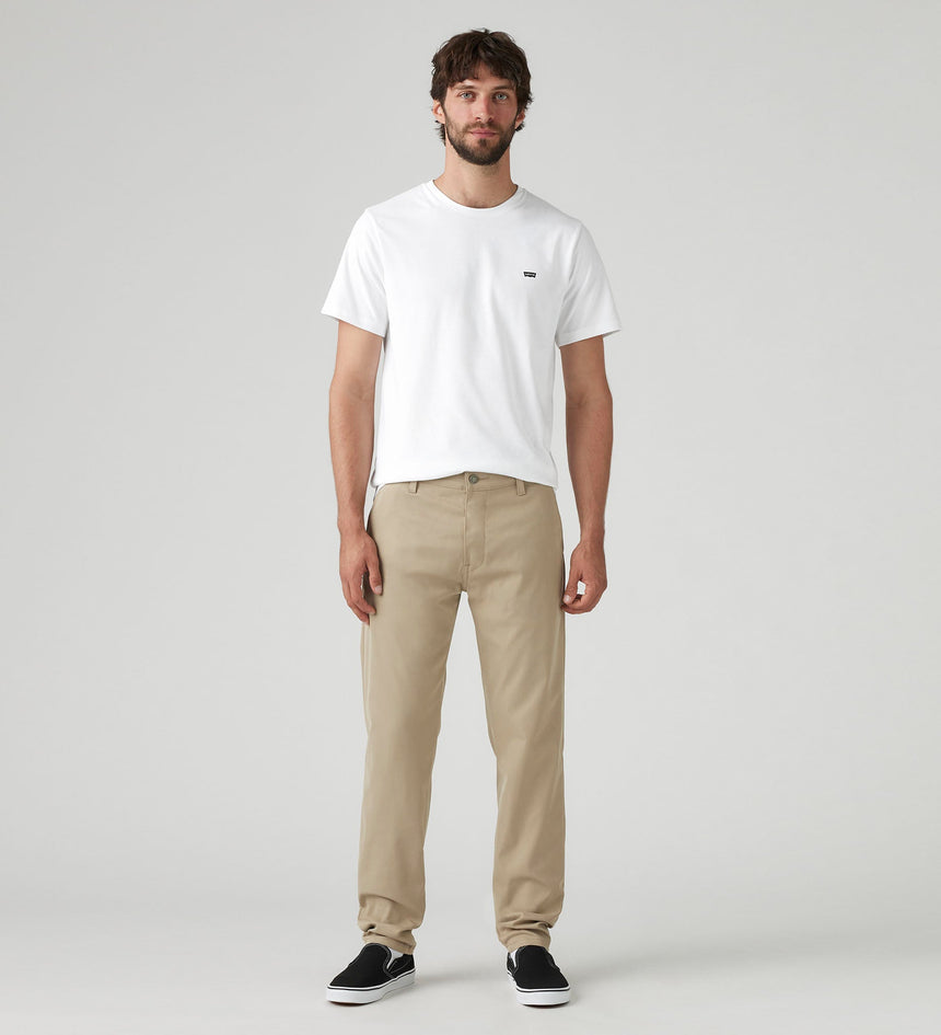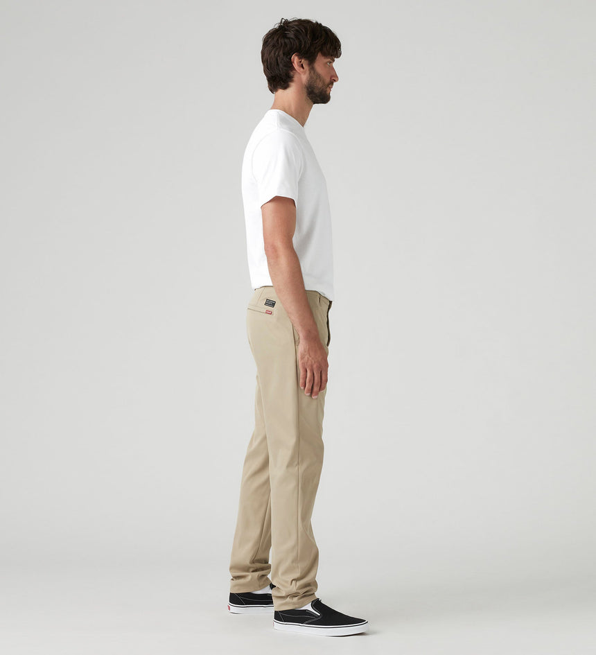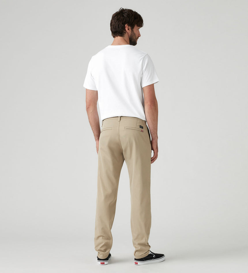 Our Levi’s® XX Chino Standard Taper Tech+ were engineered for moving, traveling and all your adventures. We took the fit you know and love and upgraded them with supersoft, moisture-wicking, wrinkle-resistant, high- stretch fabric and UPF 50+ sun protection. Bonus: They’re designed with three zip pockets and 3M™ reflective trims on the inner cuffs for added safety.