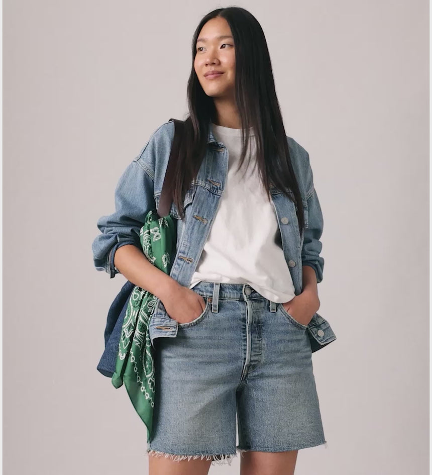The first ever jean shorts. Modeled after the 501® Original jeans, these Mid-Thigh Shorts were made with our iconic vintage-inspired fit, a flattering high rise and a longer inseam. To this day, they’ve never gone out of style. And they never will.