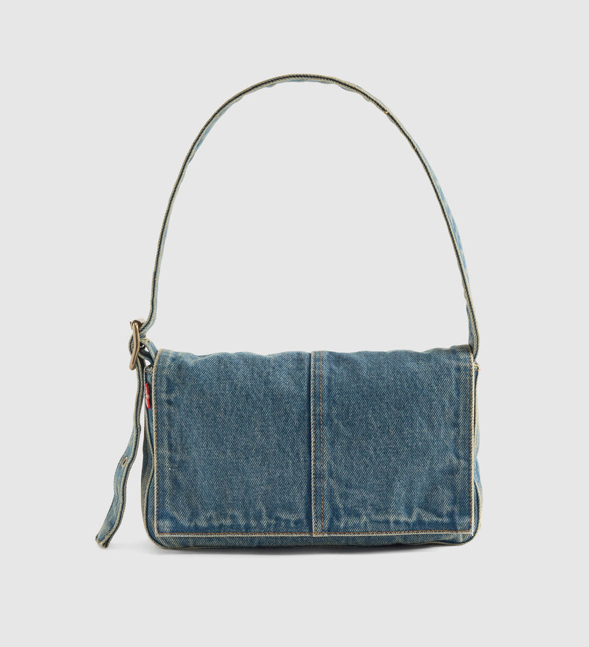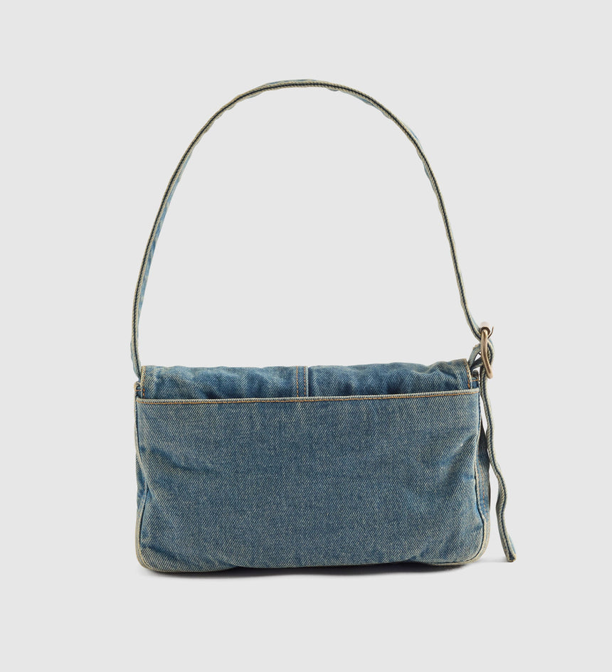 This vintage-inspired Brannan Shoulder Bag is made with denim and features a foldover design with a magnet closure and an adjustable strap.