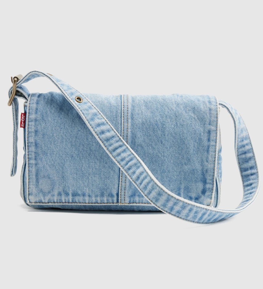This vintage-inspired Brannan Shoulder Bag is made with denim and features a foldover design with a magnet closure and an adjustable strap.
