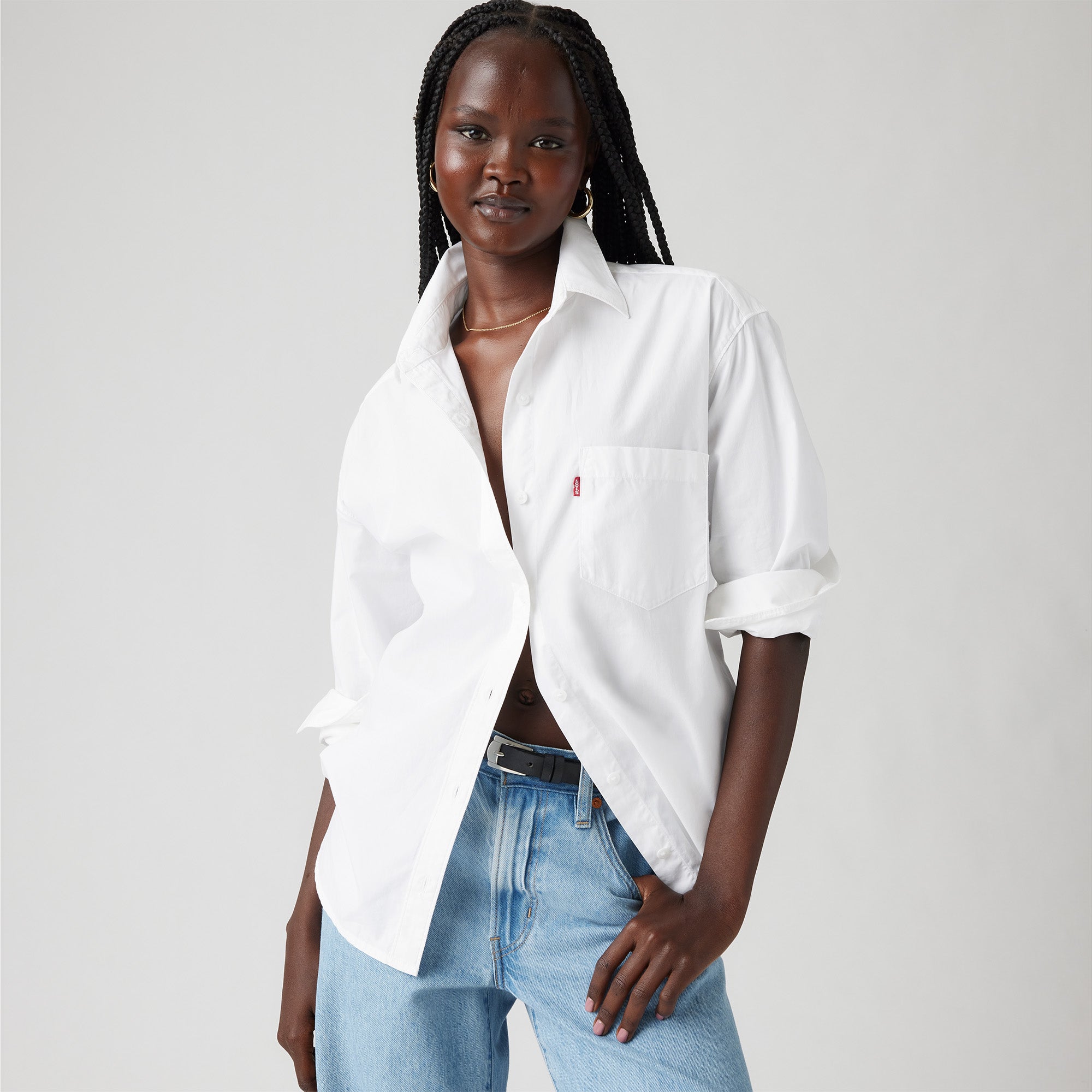 Keep it laid-back with our Harlie Boyfriend Shirt. It's a relaxed-fitting, do-it-all wardrobe stable that looks equally good by itself or thrown over your favorite tee.