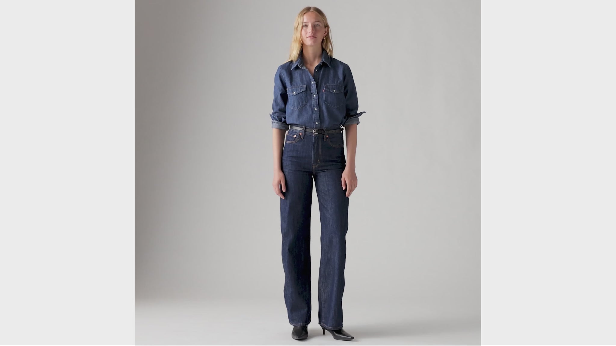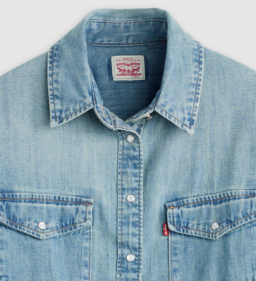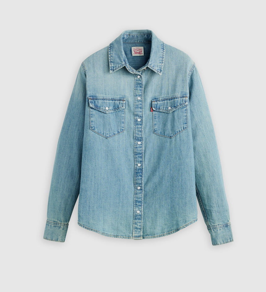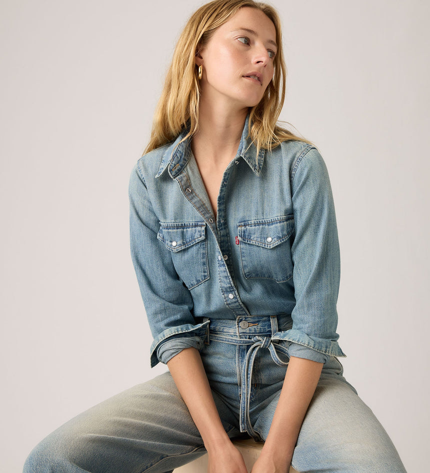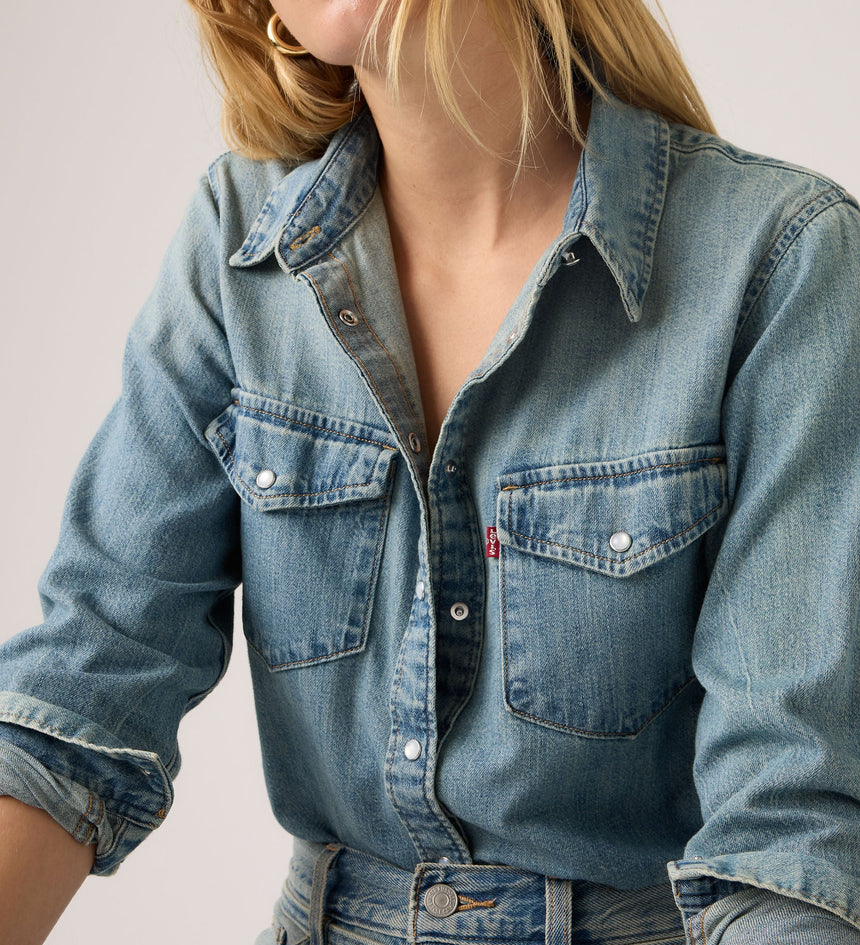 - A long-sleeve denim western shirt
