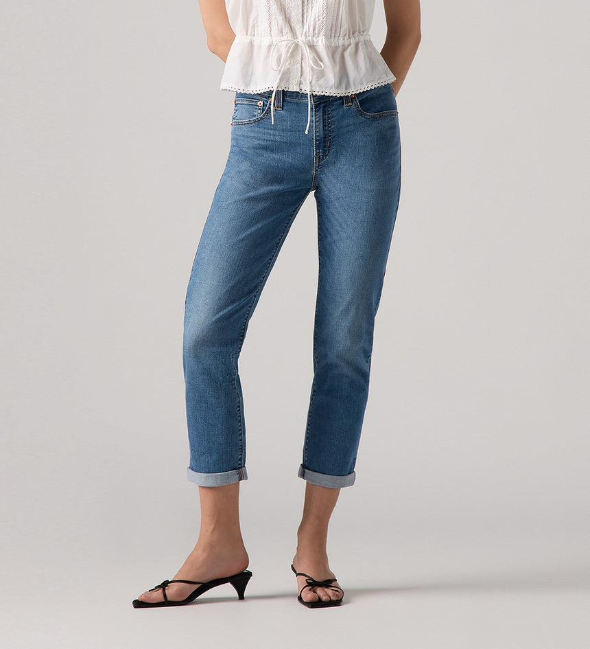When it comes to being comfortable, no jean has your back quite like our Mid-Rise Boyfriend. Loose and slouchy, this pair works whether you want to keep things ultra-laidback or all dressed up.