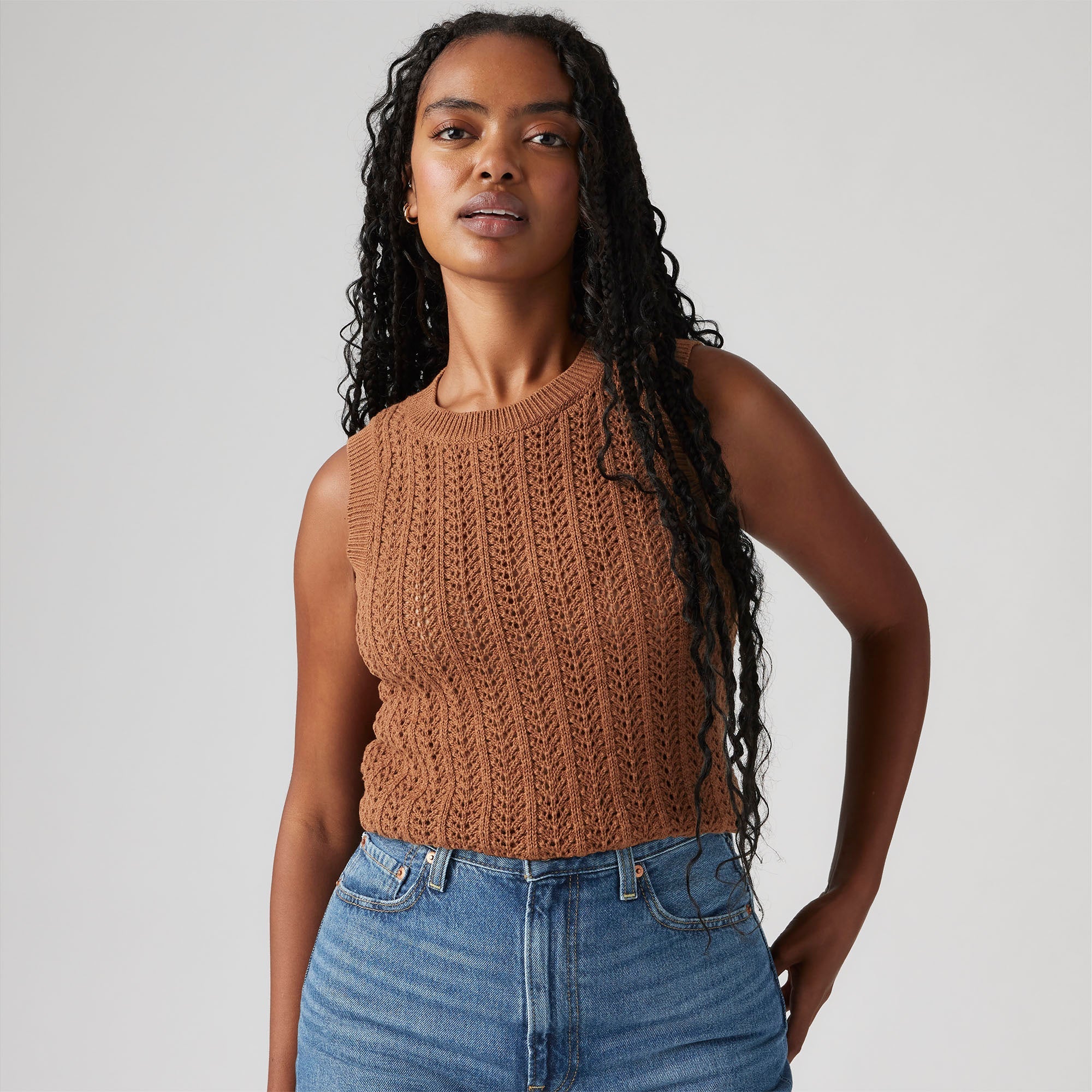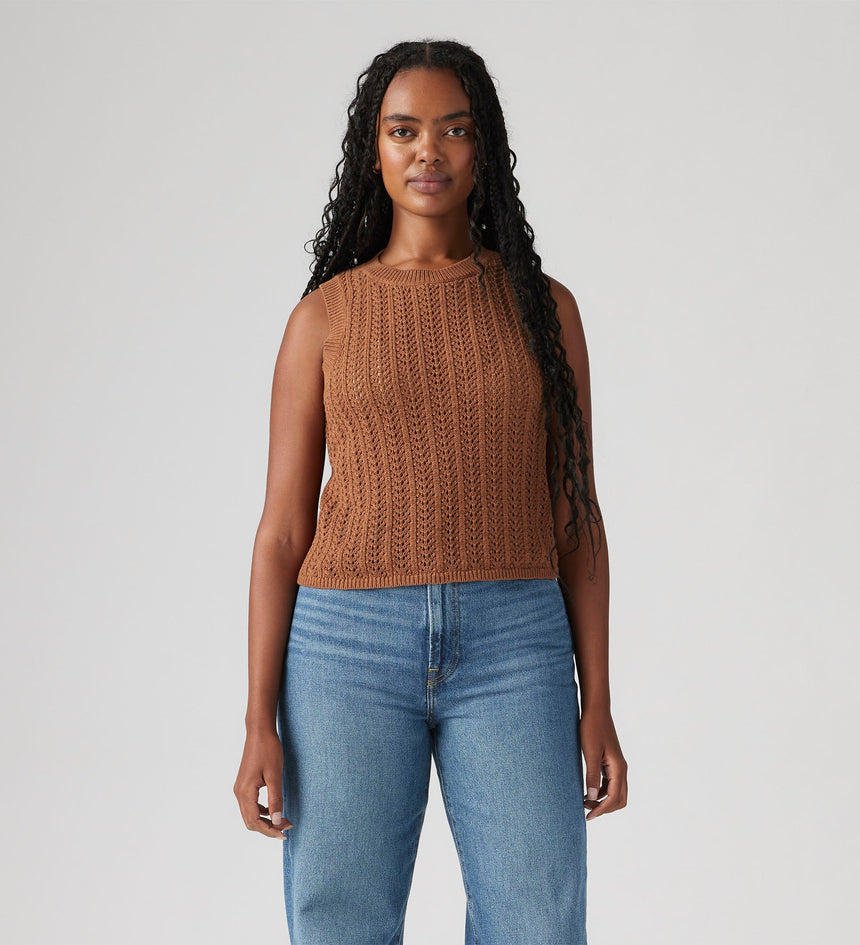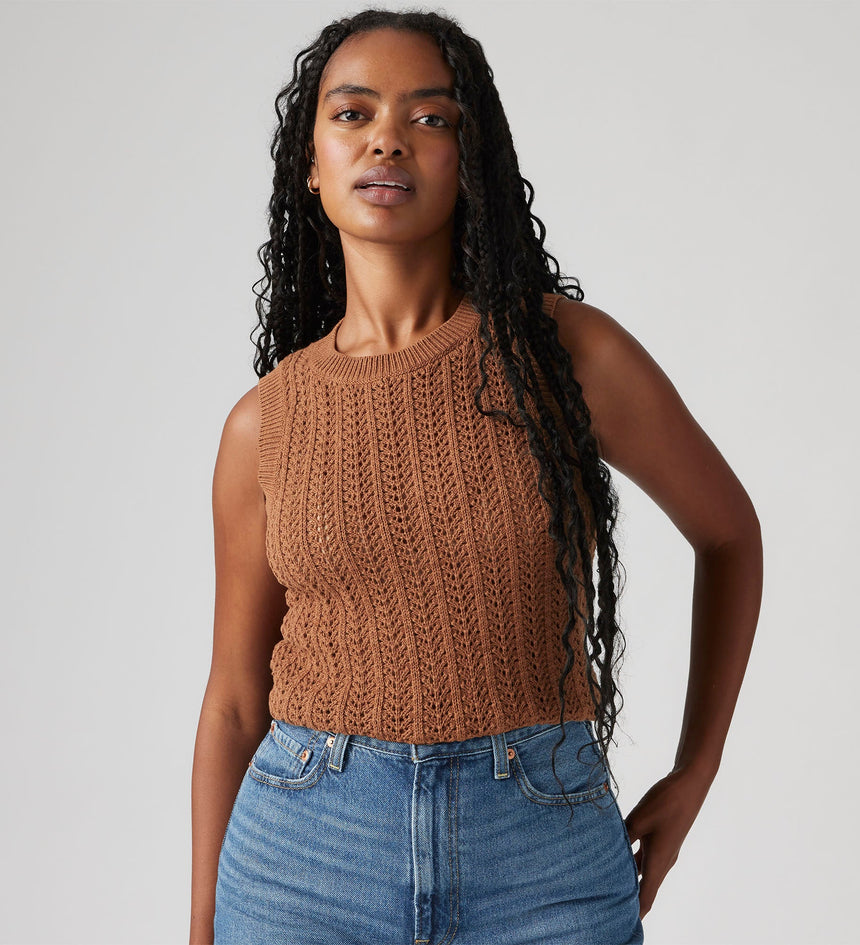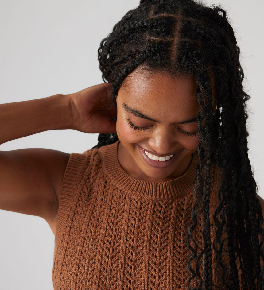 The easiest tank in your closet. Our Sunrise Crochet Tank features a ribbed crew neckline, a standard fit and a knit design.