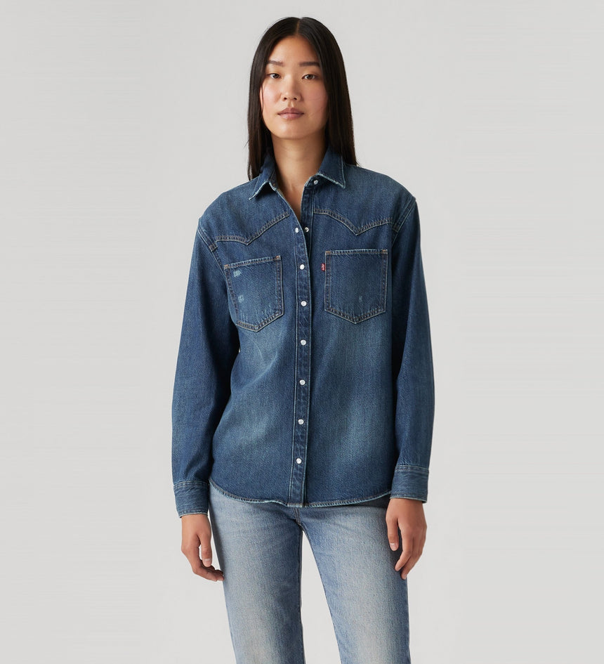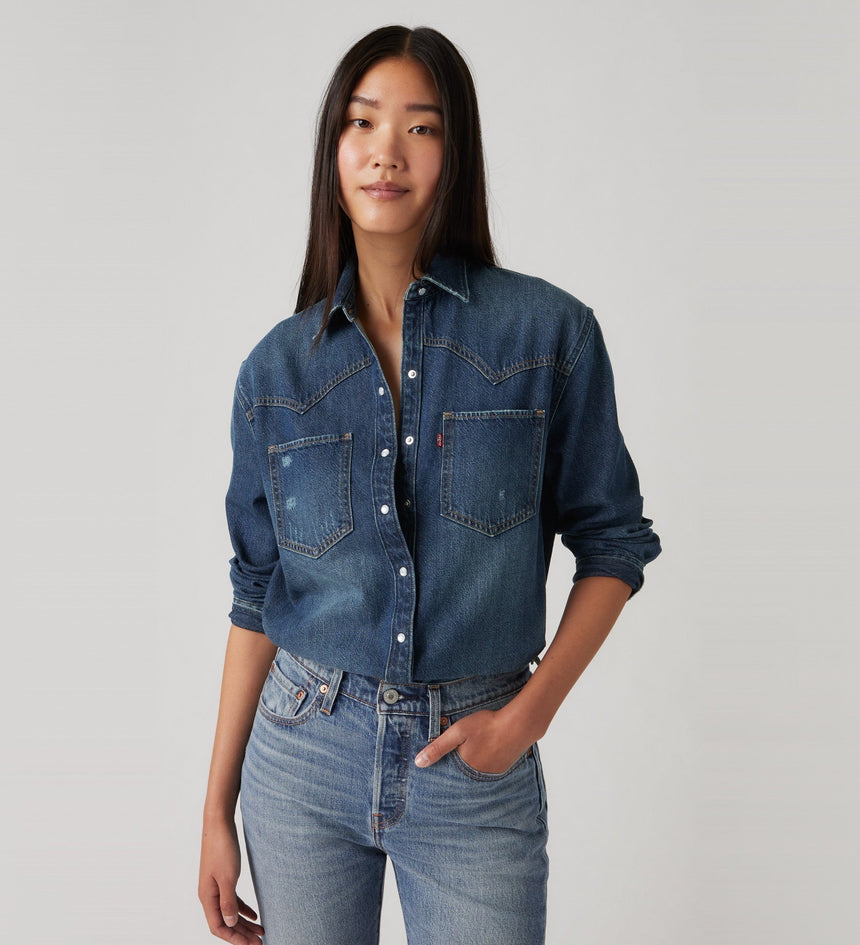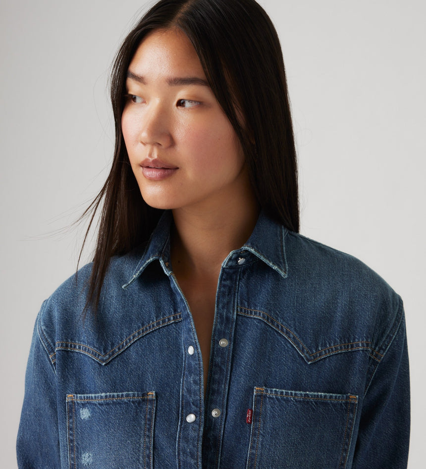 Cowboy boots not included. Our Teodora Western Shirt is a feminine take on a western staple, with a classic snap-button front, two patch pockets, a relaxed fit and a western-inspired yoke design.