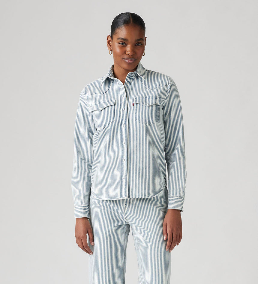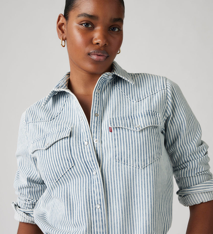 Worn by pioneers, outliers and outcasts, our Western shirts have been tested by generations and represent rugged American cool. This Ultimate Western Shirt bears classic features like pearl snaps and pointed pocket flaps, which replicate the arcuate stitches on the back pockets of our jeans.