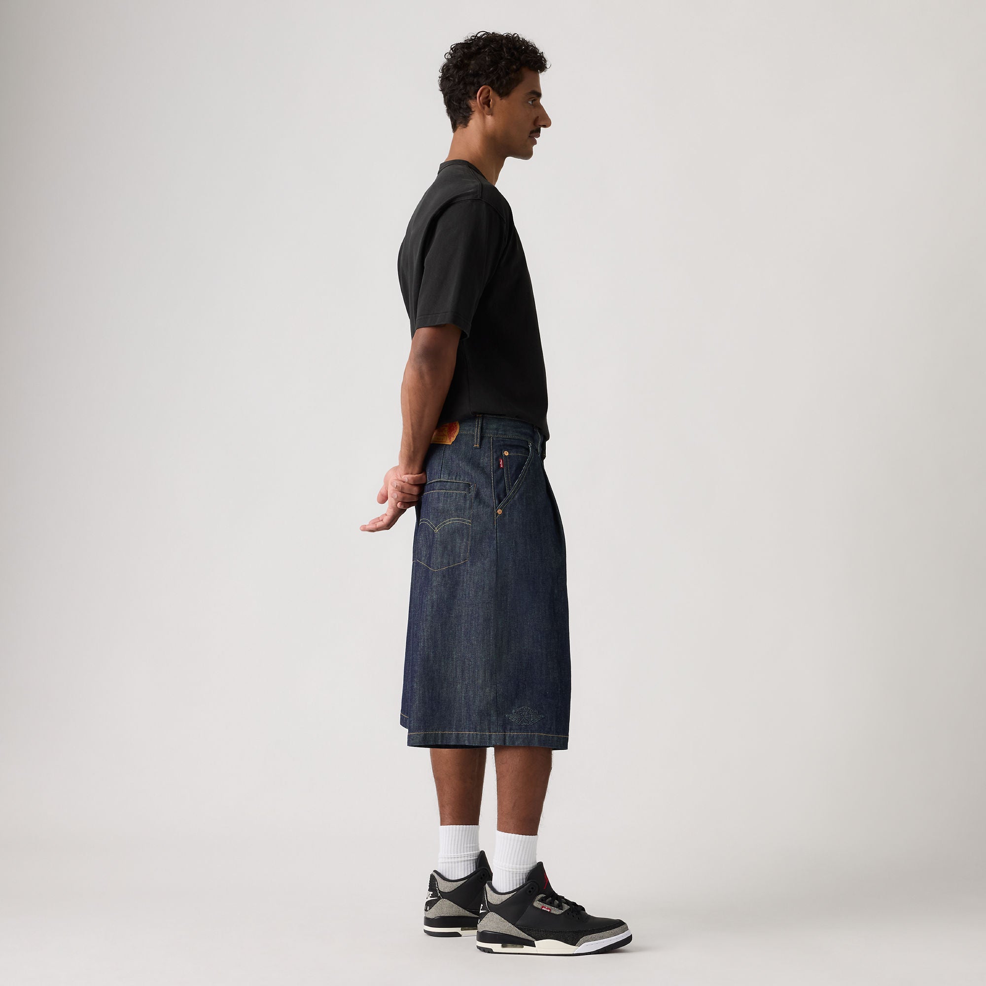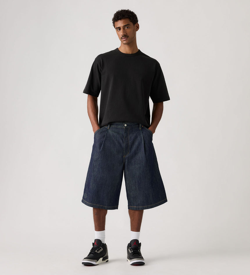 Greatness attracts greatness. We teamed up with Jordan for a bold new collection that celebrates the shared DNA of two icons embraced by subcultures around the world—artists, athletes, activists, musicians, skaters and dreamers. A Jordan twist to a perfectly baggy fit. We designed these Baggy Shorts with deep pleats, a below-the-knee fit and rinsed indigo denim.